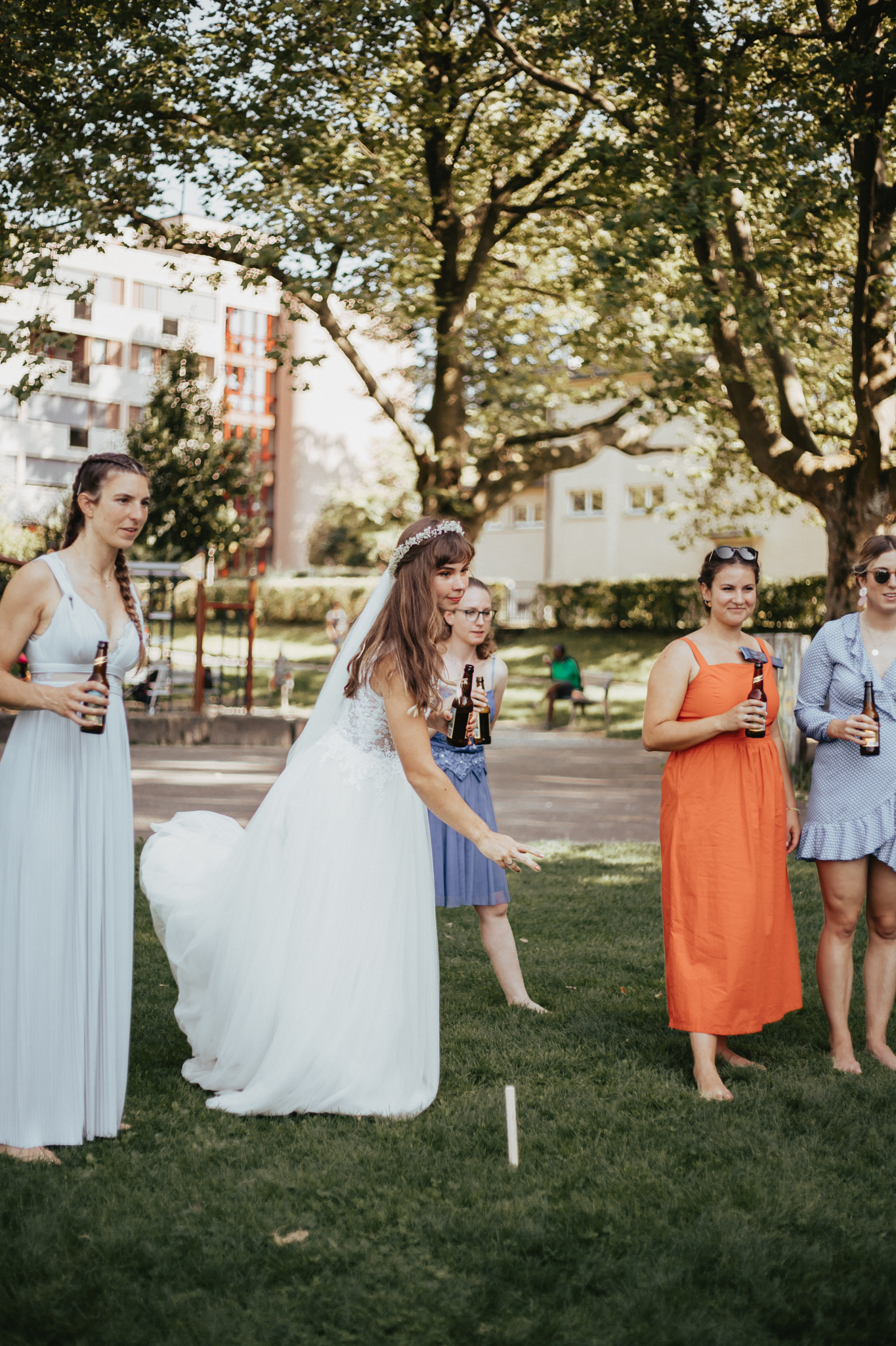Der Tag begann mit einer Fahrt nach Winterthur. Das Wetter sah viel versprechend aus und ich freute mich riesig auf meine erste grosse Hochzeit von 2021. Die tolle Braut war bereits am ‚Getting Ready‘ und ich sollte zum First Look mit Pascal anfangen zu fotografieren. Die beiden haben ihren Tag sehr locker und spontan geplant / gestaltet, was uns immer wieder viele Freiheiten erlaubt hat. Insgesamt gab es viele lustige und schöne Momente: von Kube Trinkspielen, verrückten Gruppenfotos bis zu emotionalen Reden. Der Tag war wunderschön und es war mir eine Ehre ihn nicht nur fotografisch, sondern auch als Teil der Gruppe zu begleiten. Als etwas ganz besonderes wird mir die lange Tafel ohne Sitzordnung in Erinnerung bleiben!