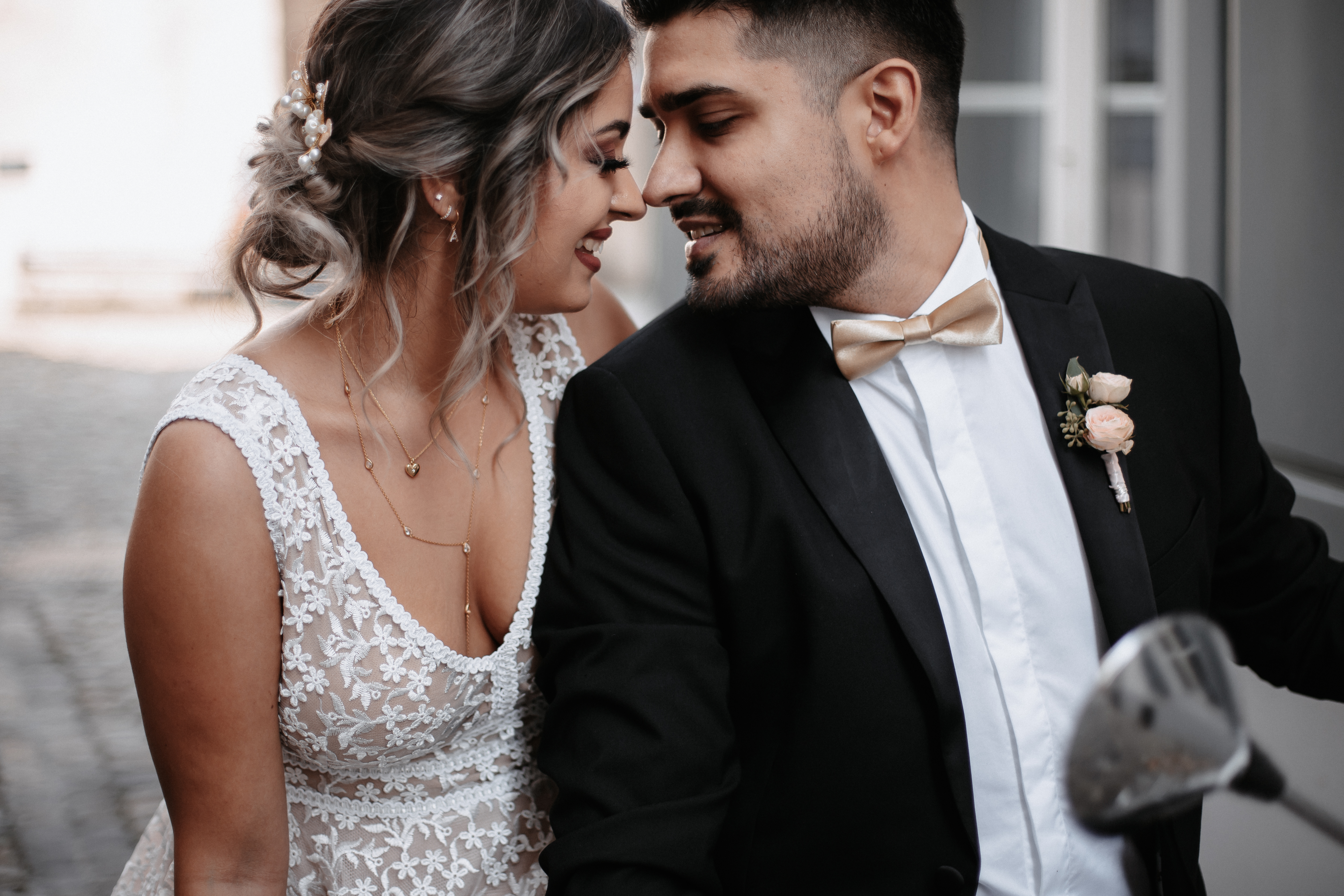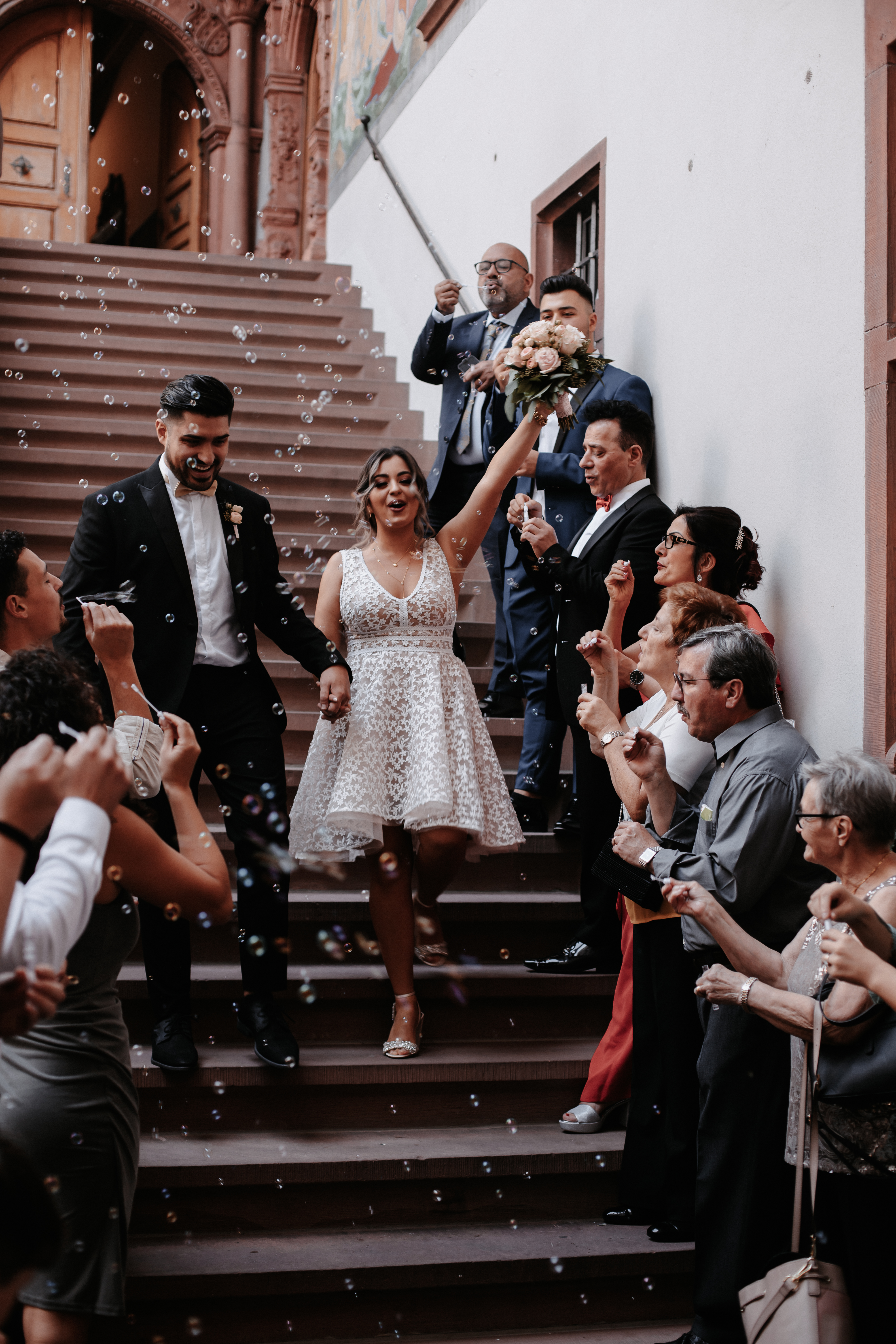 Auch während der kleinen Zeremonie im Standesamt sind viele Emotionen spürbar und erkennbar. Für alles wurde gesorgt: ein riesiger Luftballon mit „Just married“, Herzchen Seifenblasen, Konfetti-Kanonen, eine Drohne und Vespa für das Paarshooting… Aber am meisten wurde die Liebe von den beiden gefeiert.