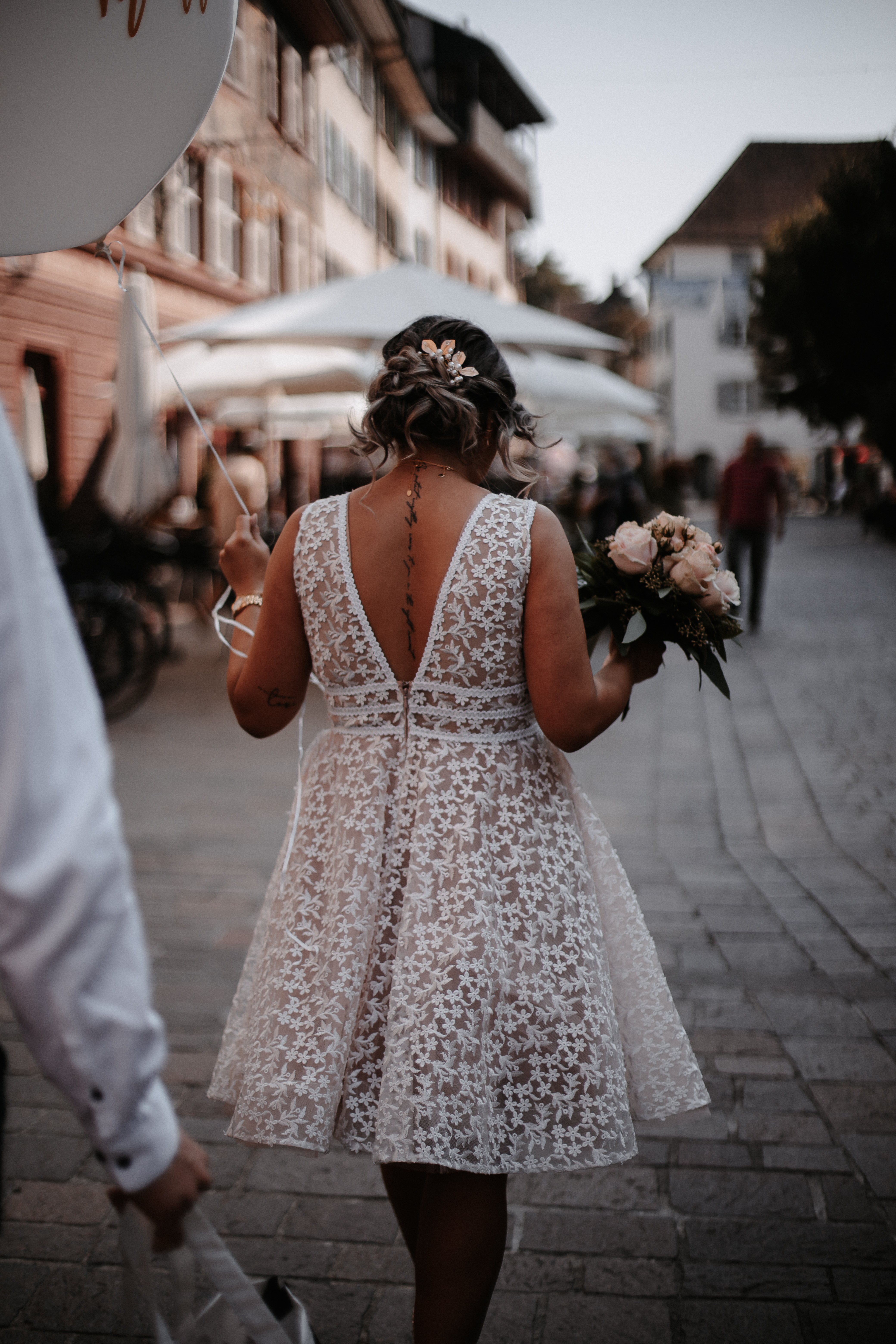 Ein wunderschöner Spätsommer Tag in der Altstadt des schweizerischen Rheinfeldens. Es ist 10:30 Uhr morgens und es ist ganz ruhig im Städtchen. Langsam trudeln die ersten Gäste ein, es wird sich herzlich begrüsst und umarmt. Das Brautpaar fährt vor und als die wunderschöne Braut aus dem Auto steigt, kullern bei ihr und den Gästen bereits die ersten Tränen. Joana und Aldo begleiten sich gegenseitig schon viele Jahre, man merkt wie eng beide Familien sind und wie groß die Freude über die Hochzeit der beiden ist. Sie hätten in einer Woche eine große Hochzeit in Italien gefeiert, doch Corona hat dies leider verhindert.