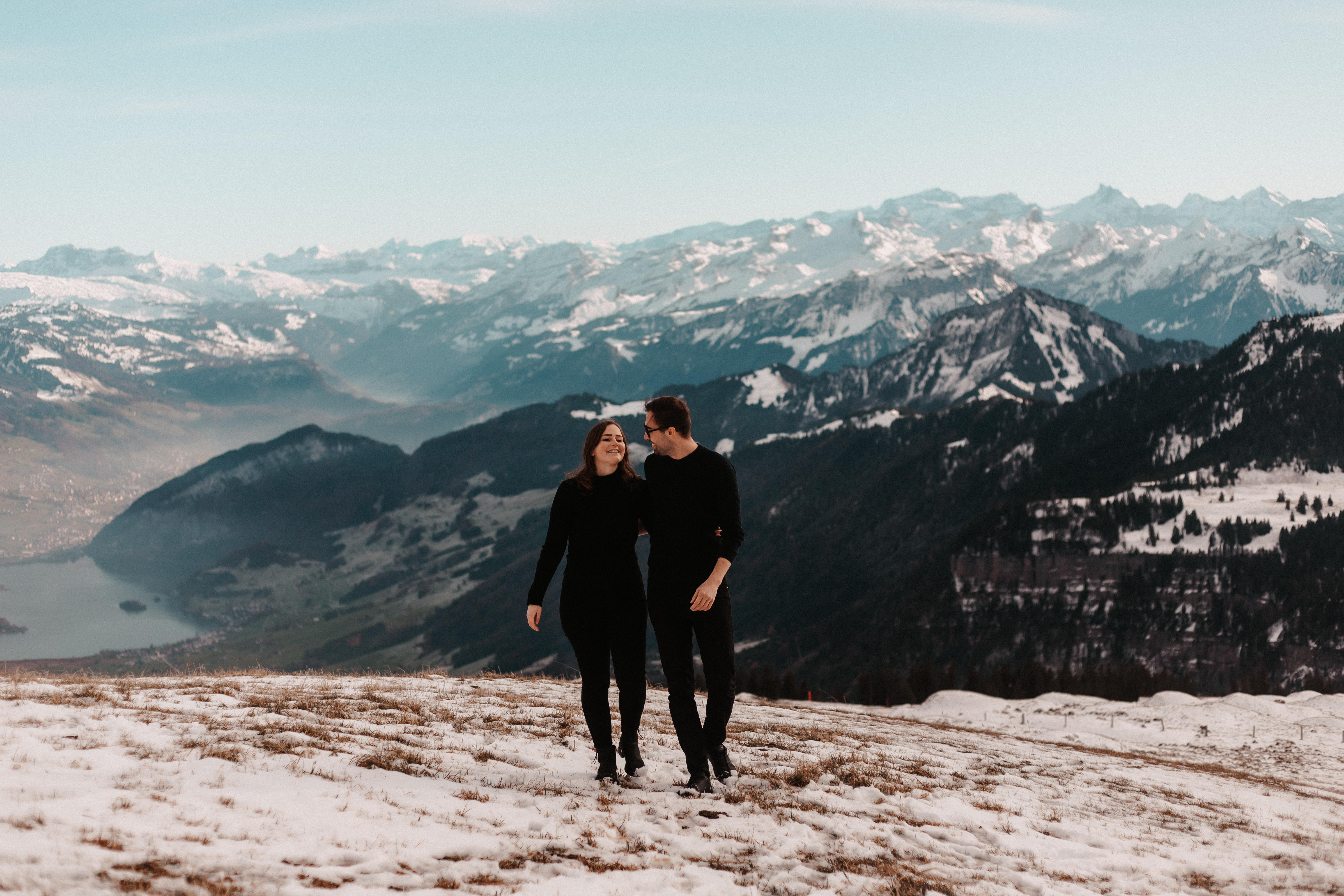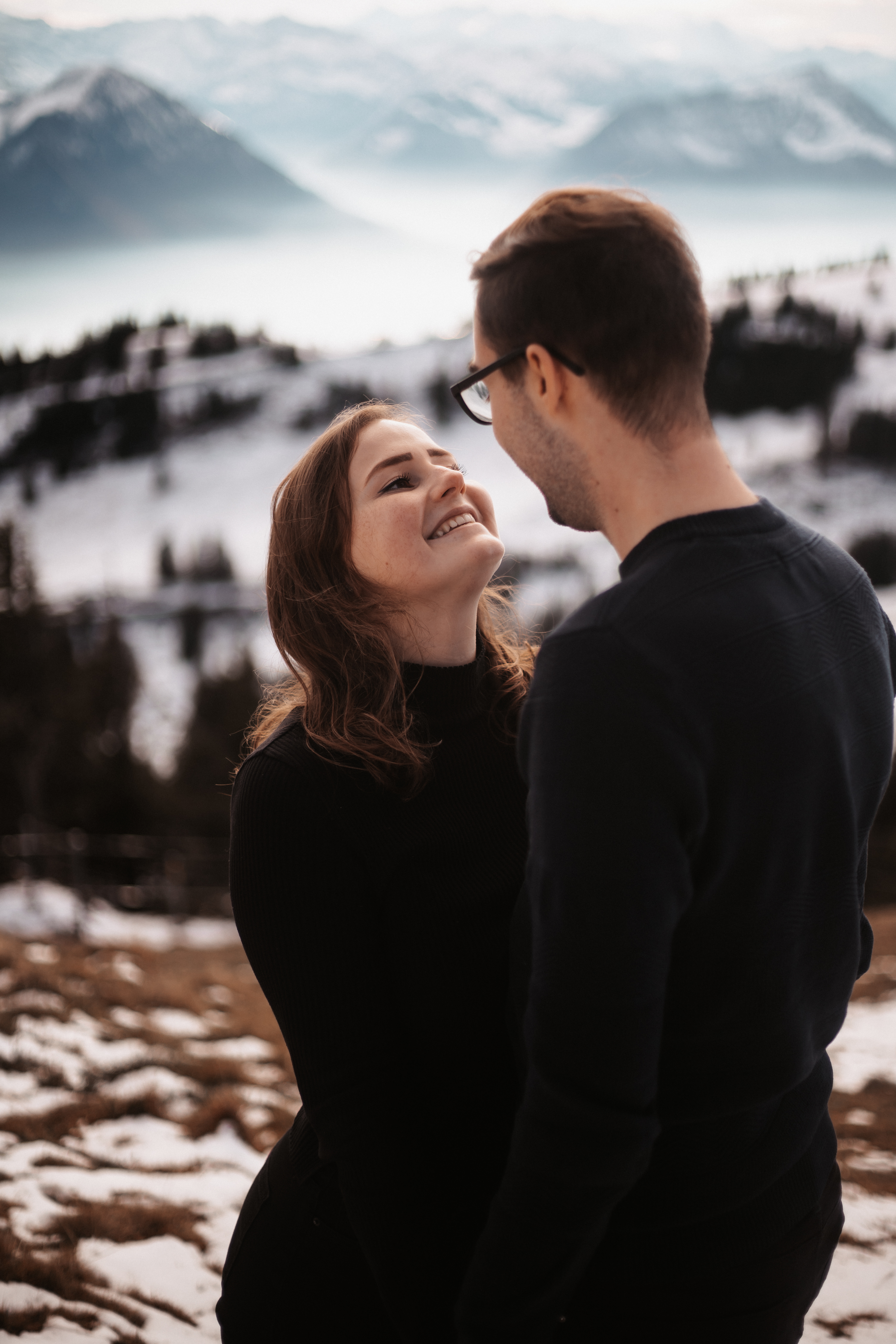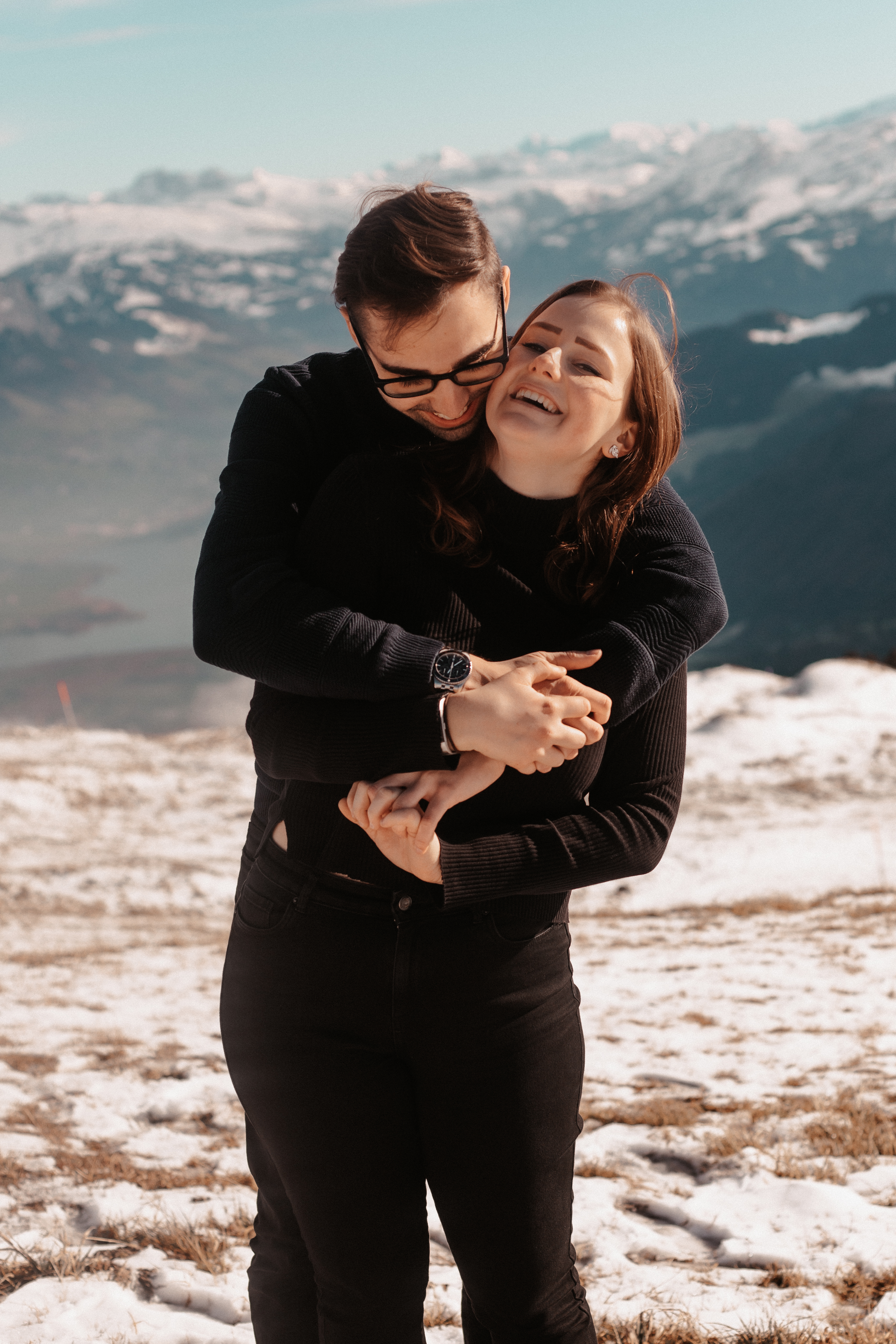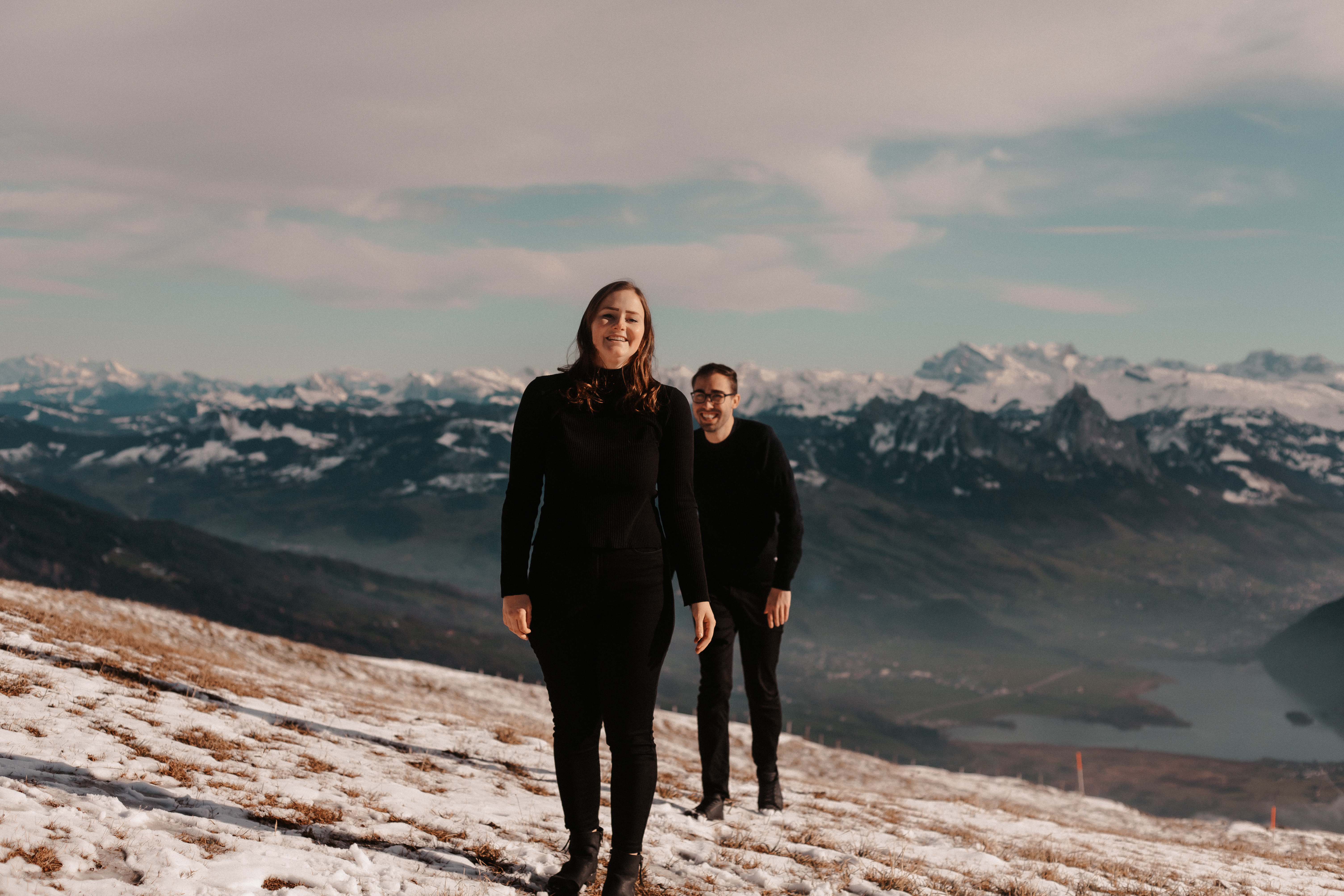 Rigi- Die Königin der Berge. Auf der Anfahrt versanken wir im Nebelmeer- die Hoffnung auf eine schöne Aussicht schien mir sehr klein. Doch als wir mit der alten Zahnradbahn den steilen Berg hochfuhren, brauchte es nicht lange und wir durchbrachen das dichte Nebelmeer und es strahlte uns die Sonne entgegen. Nicht nur das: Oben lag Schnee! Es waren einige Leute unterwegs, kein Wunder an einem Sonntag. Doch wir mussten uns nur ein bisschen von den offiziellen Wegen entfernen und wir fanden traumhafte Locations mit traumhaftem Licht. Die Sonne wärmte uns zwischendurch auf, denn auf 1500 m.ü.M. kann es kalt werden. Doch die beiden liessen sich nichts anmerken und hatten gemeinsam einen großen Spaß. Der ganze Tag war wundervoll und gefüllt mit ganz vielen tollen Gesprächen. Die entstandenen Bilder davon sind aber der Höhepunkt!