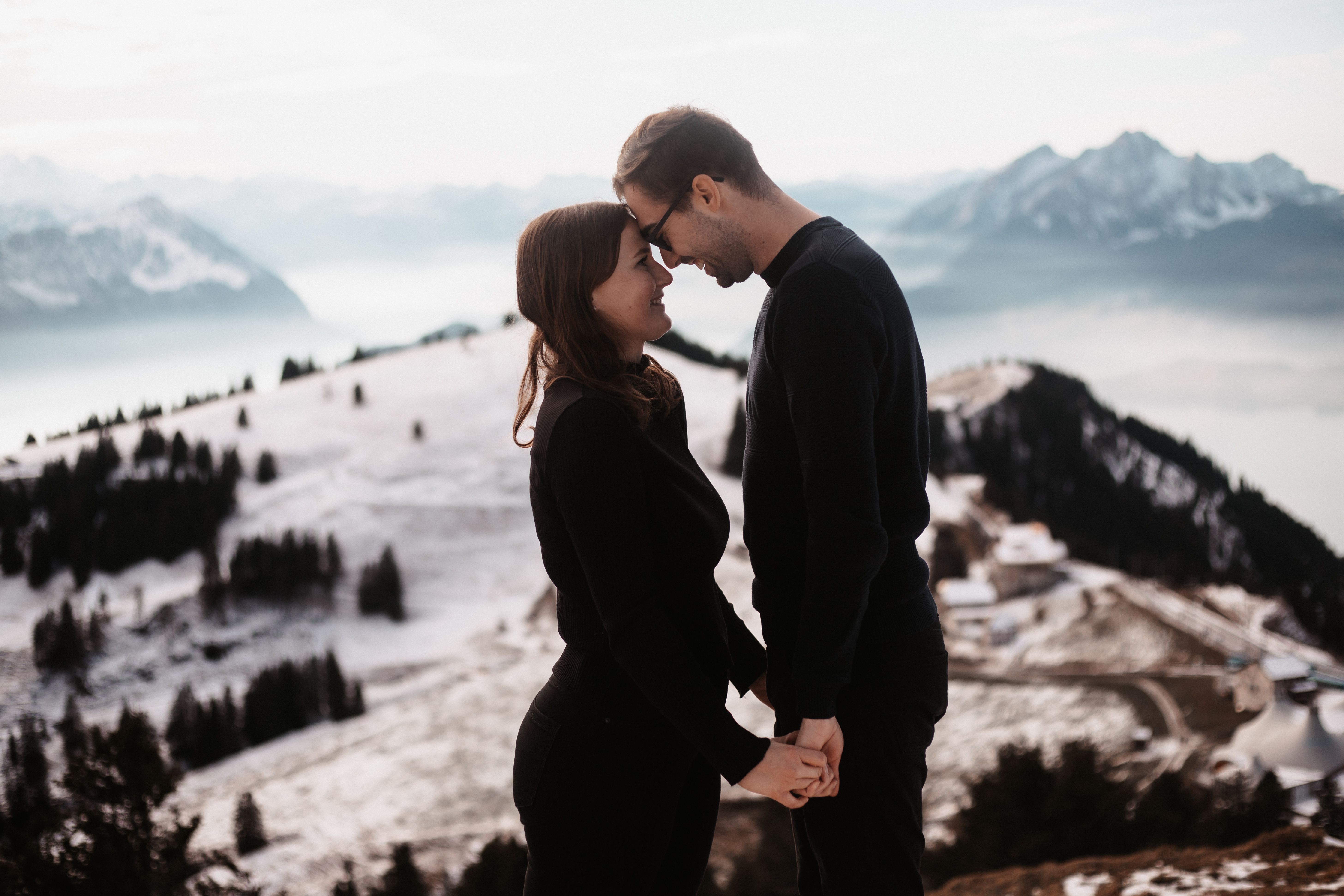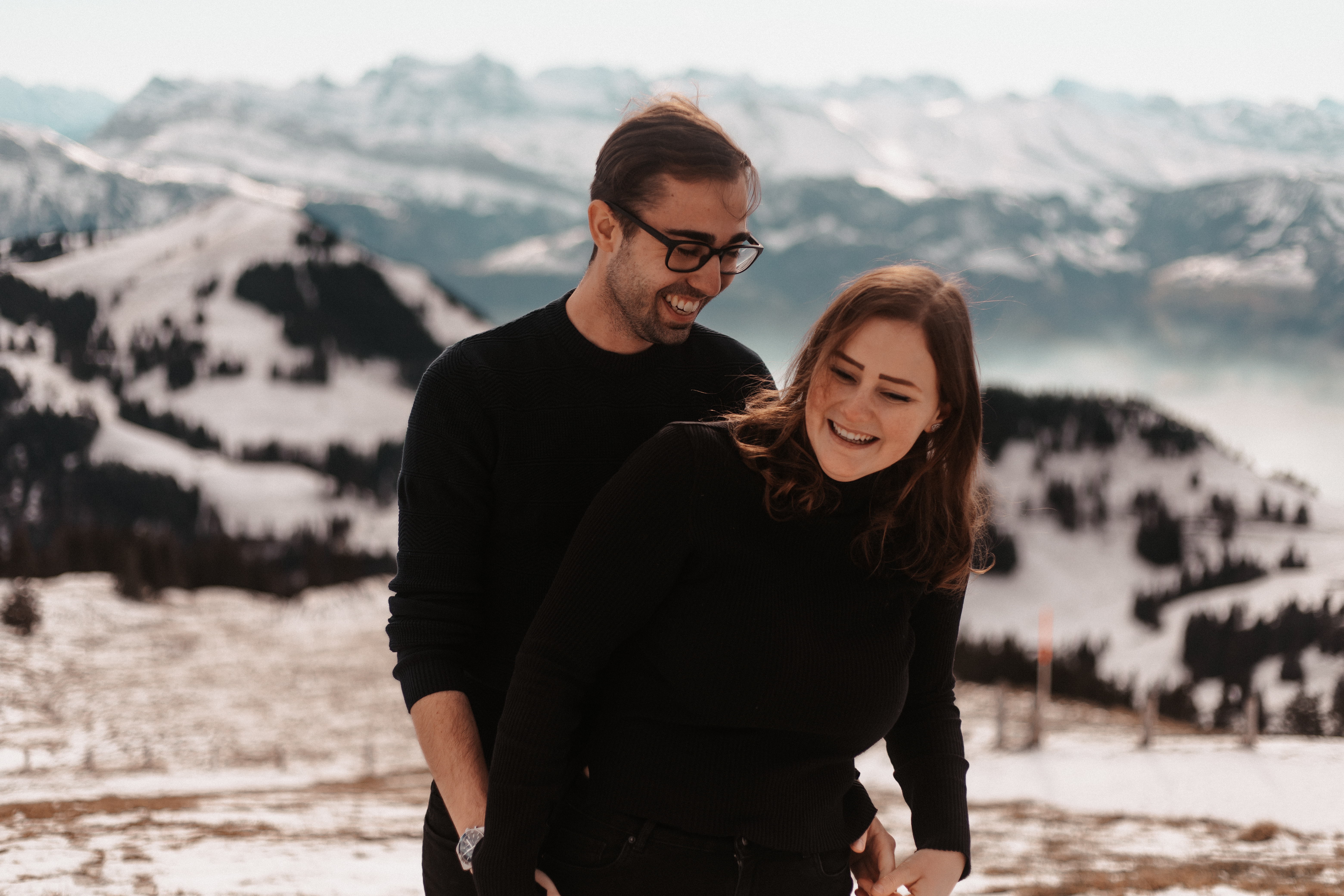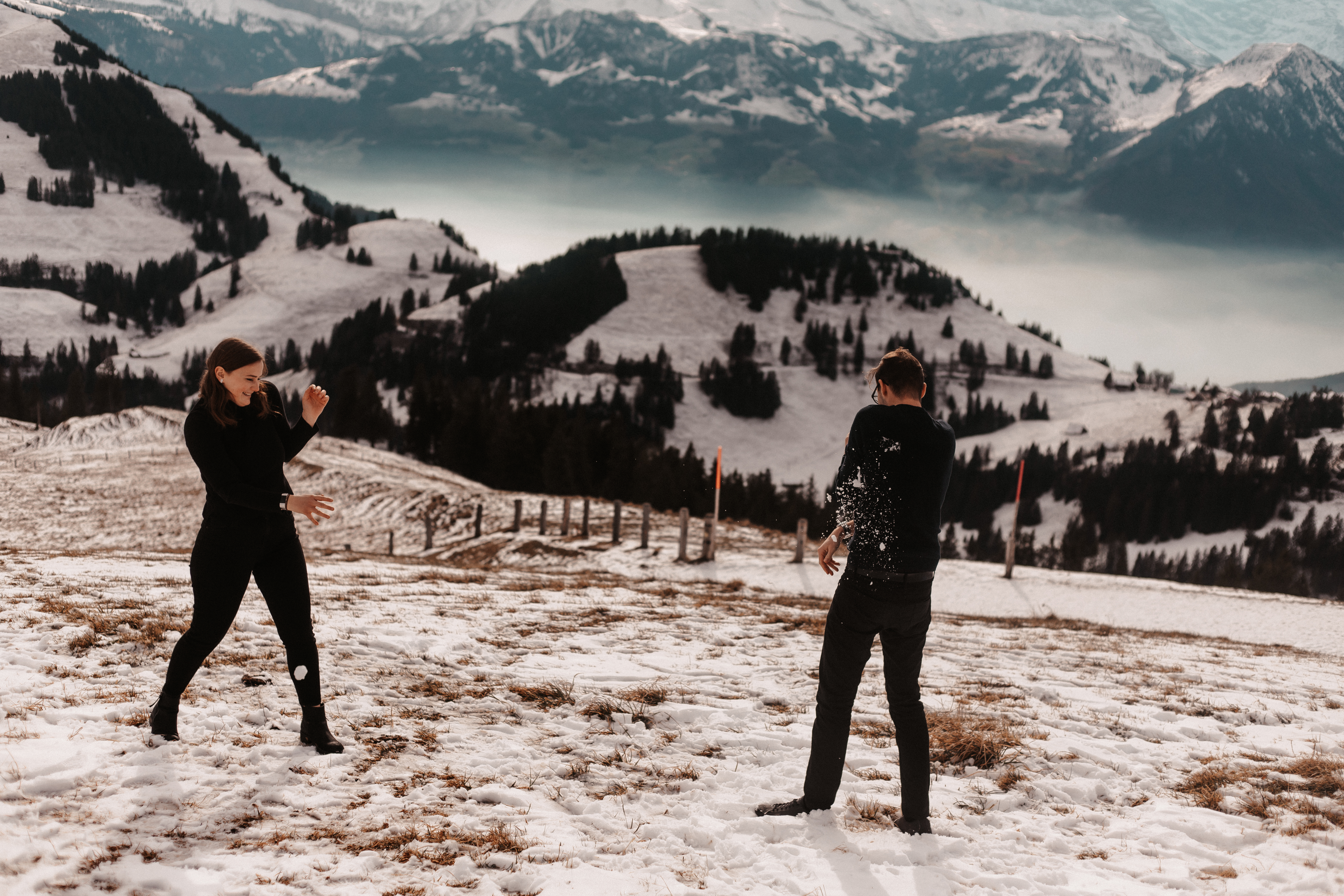 Rigi- Die Königin der Berge. Auf der Anfahrt versanken wir im Nebelmeer- die Hoffnung auf eine schöne Aussicht schien mir sehr klein. Doch als wir mit der alten Zahnradbahn den steilen Berg hochfuhren, brauchte es nicht lange und wir durchbrachen das dichte Nebelmeer und es strahlte uns die Sonne entgegen. Nicht nur das: Oben lag Schnee! Es waren einige Leute unterwegs, kein Wunder an einem Sonntag. Doch wir mussten uns nur ein bisschen von den offiziellen Wegen entfernen und wir fanden traumhafte Locations mit traumhaftem Licht. Die Sonne wärmte uns zwischendurch auf, denn auf 1500 m.ü.M. kann es kalt werden. Doch die beiden liessen sich nichts anmerken und hatten gemeinsam einen großen Spaß. Der ganze Tag war wundervoll und gefüllt mit ganz vielen tollen Gesprächen. Die entstandenen Bilder davon sind aber der Höhepunkt!