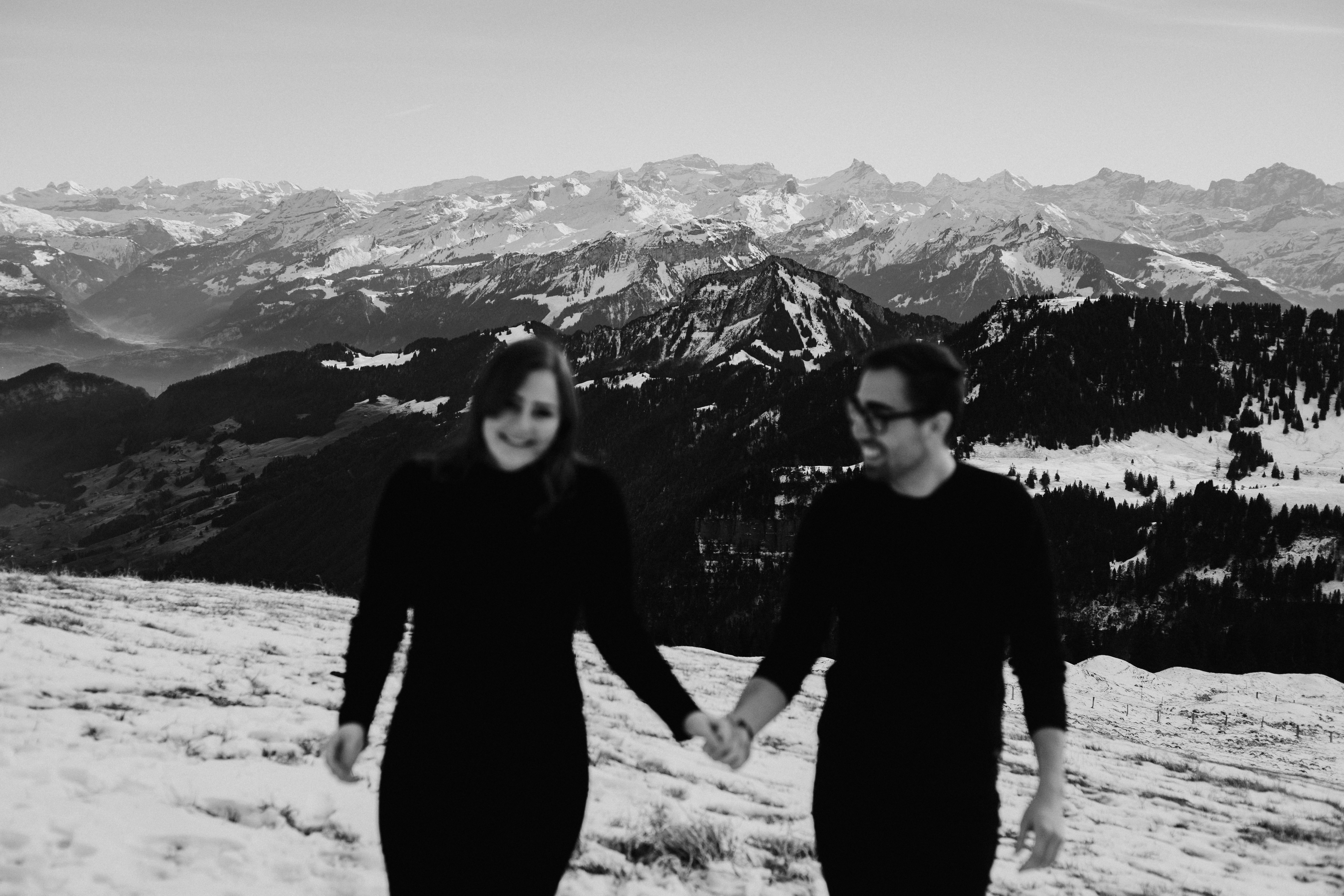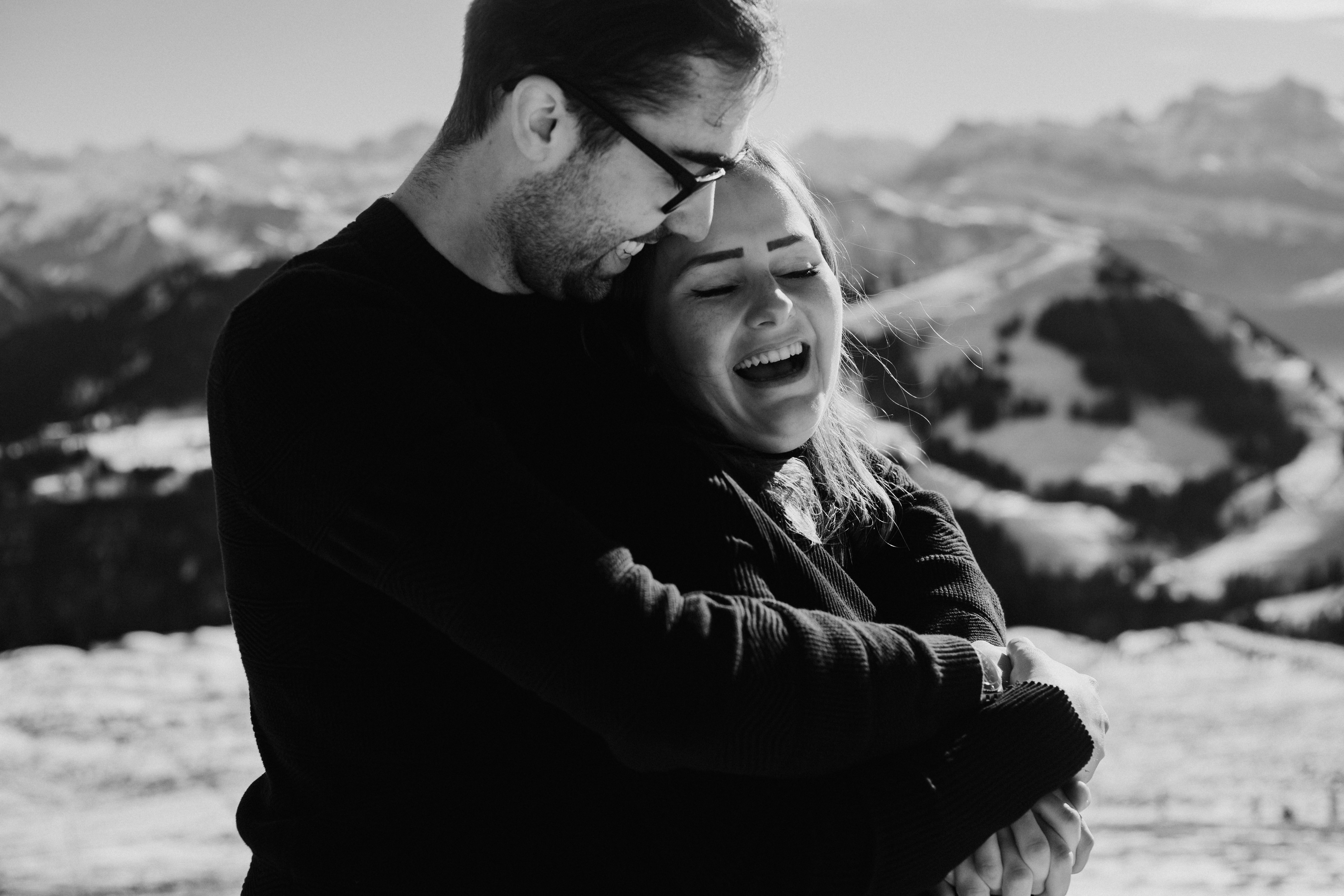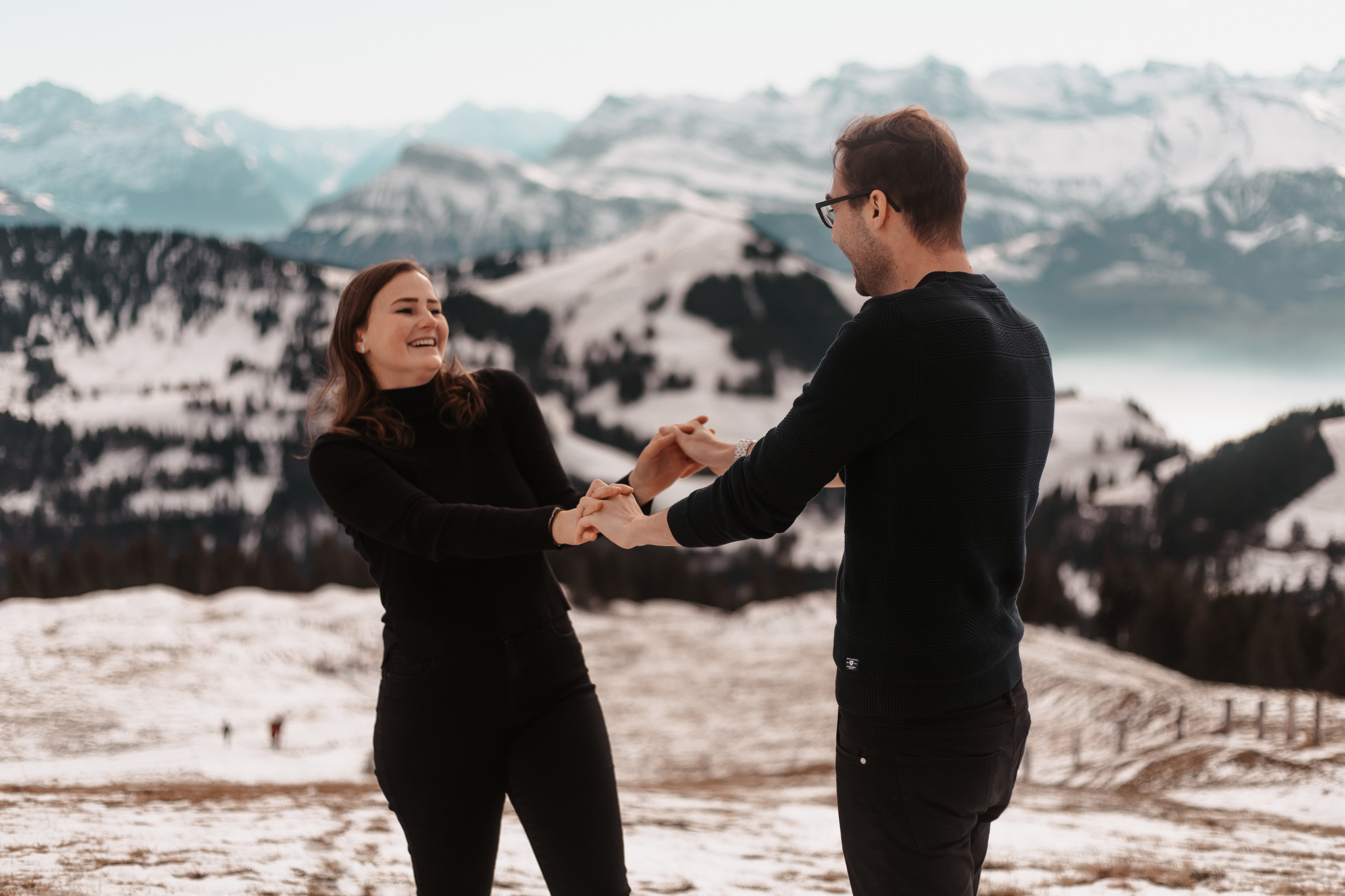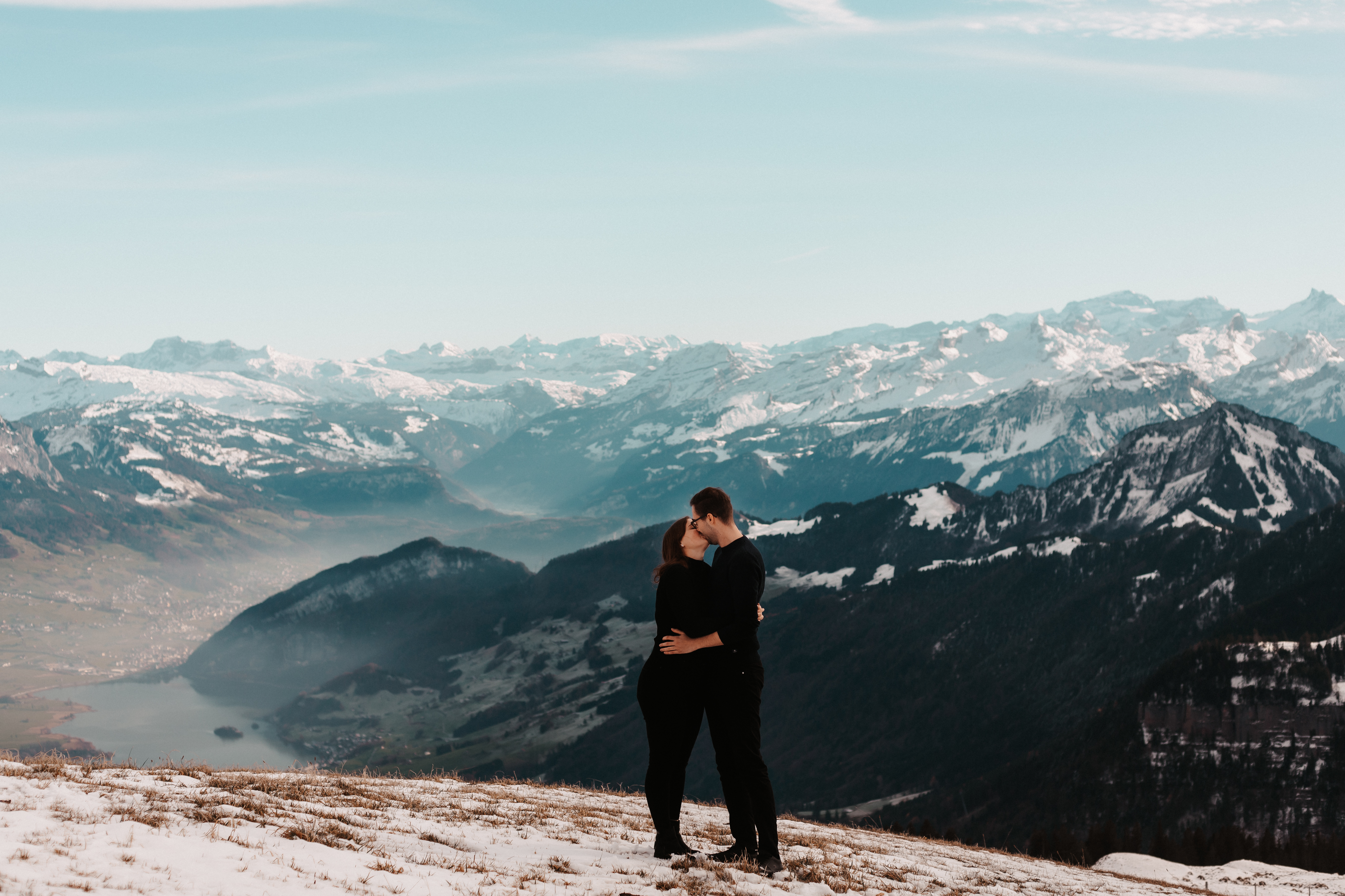 Rigi- Die Königin der Berge. Auf der Anfahrt versanken wir im Nebelmeer- die Hoffnung auf eine schöne Aussicht schien mir sehr klein. Doch als wir mit der alten Zahnradbahn den steilen Berg hochfuhren, brauchte es nicht lange und wir durchbrachen das dichte Nebelmeer und es strahlte uns die Sonne entgegen. Nicht nur das: Oben lag Schnee! Es waren einige Leute unterwegs, kein Wunder an einem Sonntag. Doch wir mussten uns nur ein bisschen von den offiziellen Wegen entfernen und wir fanden traumhafte Locations mit traumhaftem Licht. Die Sonne wärmte uns zwischendurch auf, denn auf 1500 m.ü.M. kann es kalt werden. Doch die beiden liessen sich nichts anmerken und hatten gemeinsam einen großen Spaß. Der ganze Tag war wundervoll und gefüllt mit ganz vielen tollen Gesprächen. Die entstandenen Bilder davon sind aber der Höhepunkt!