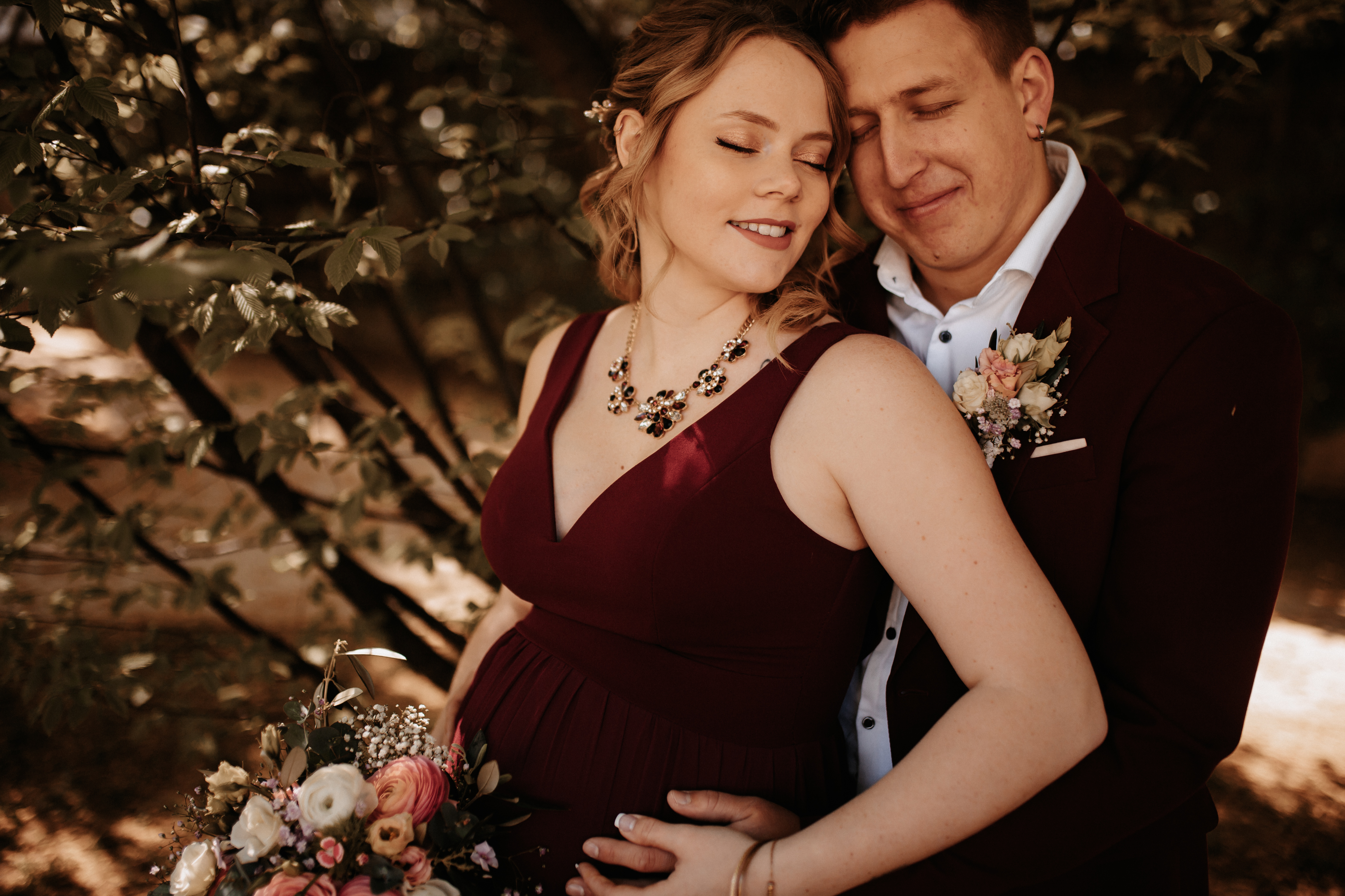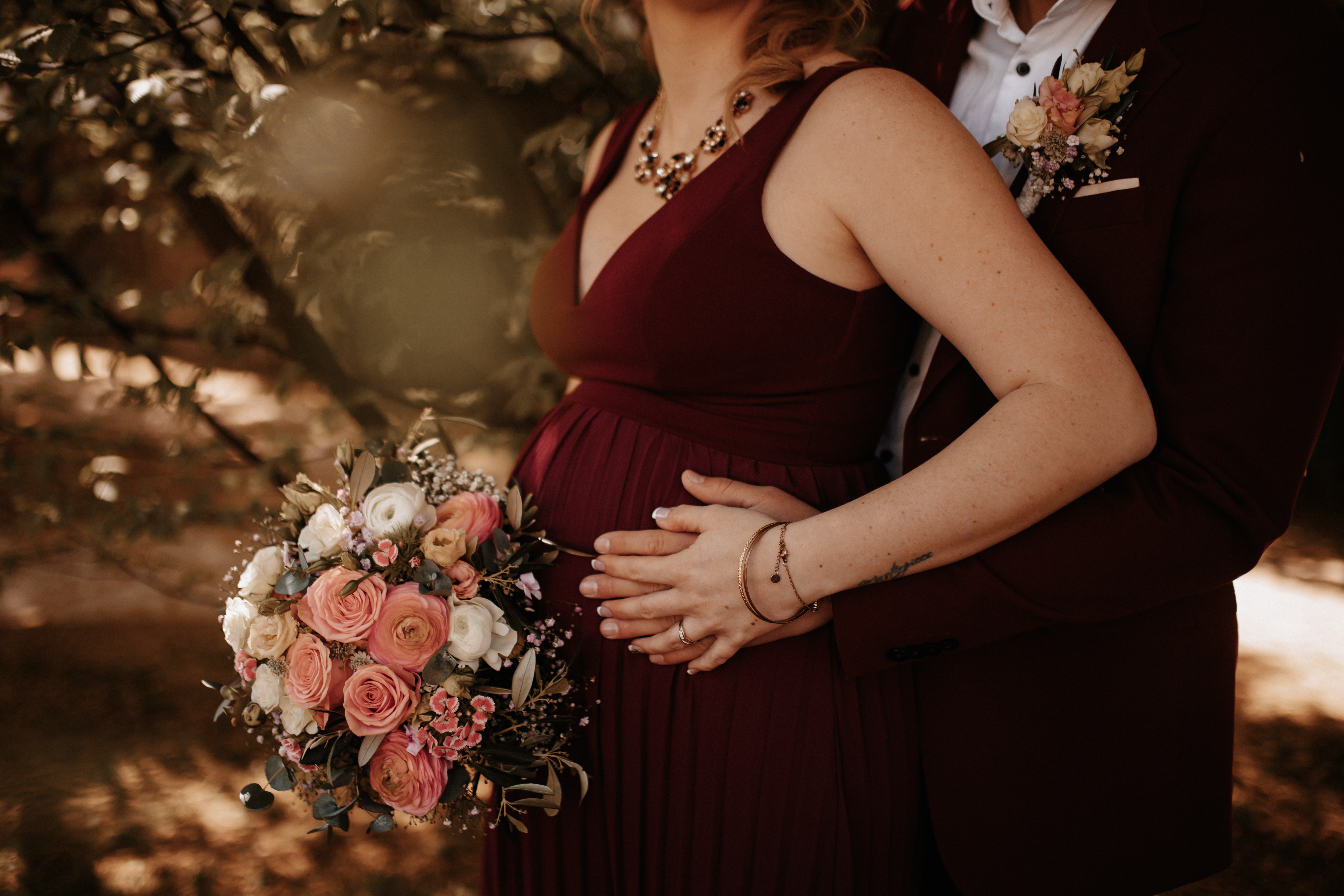 Ich wurde als Überraschung von der Trauzeugin als Fotografin dieser standesamtlichen Hochzeit gebucht. Leider durfte ich aufgrund der zu der Zeit geltenden Corona – Regelungen nicht mit ins Standesamt, allerdings war die Überraschung umso größer, als ich nach der Trauung das Paar traf. Wir hatten viel Freude und Spaß, wunderschönes Wetter und tolle Gespräche. Die beiden werden in den nächsten Wochen das erste Mal Eltern, und ich freue mich riesig für sie. Hochzeiten mit Babybauch finde ich immer was ganz besonderes.