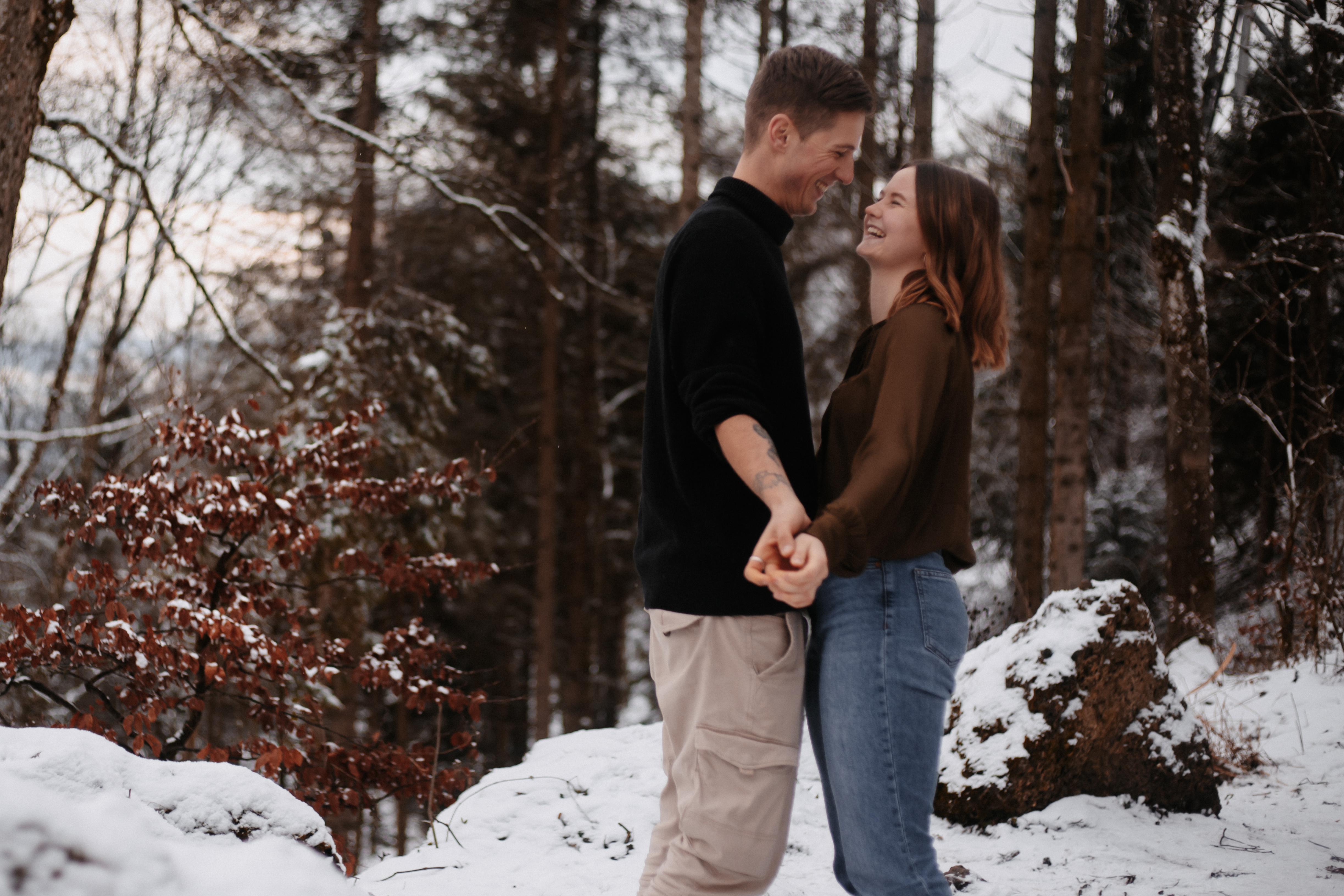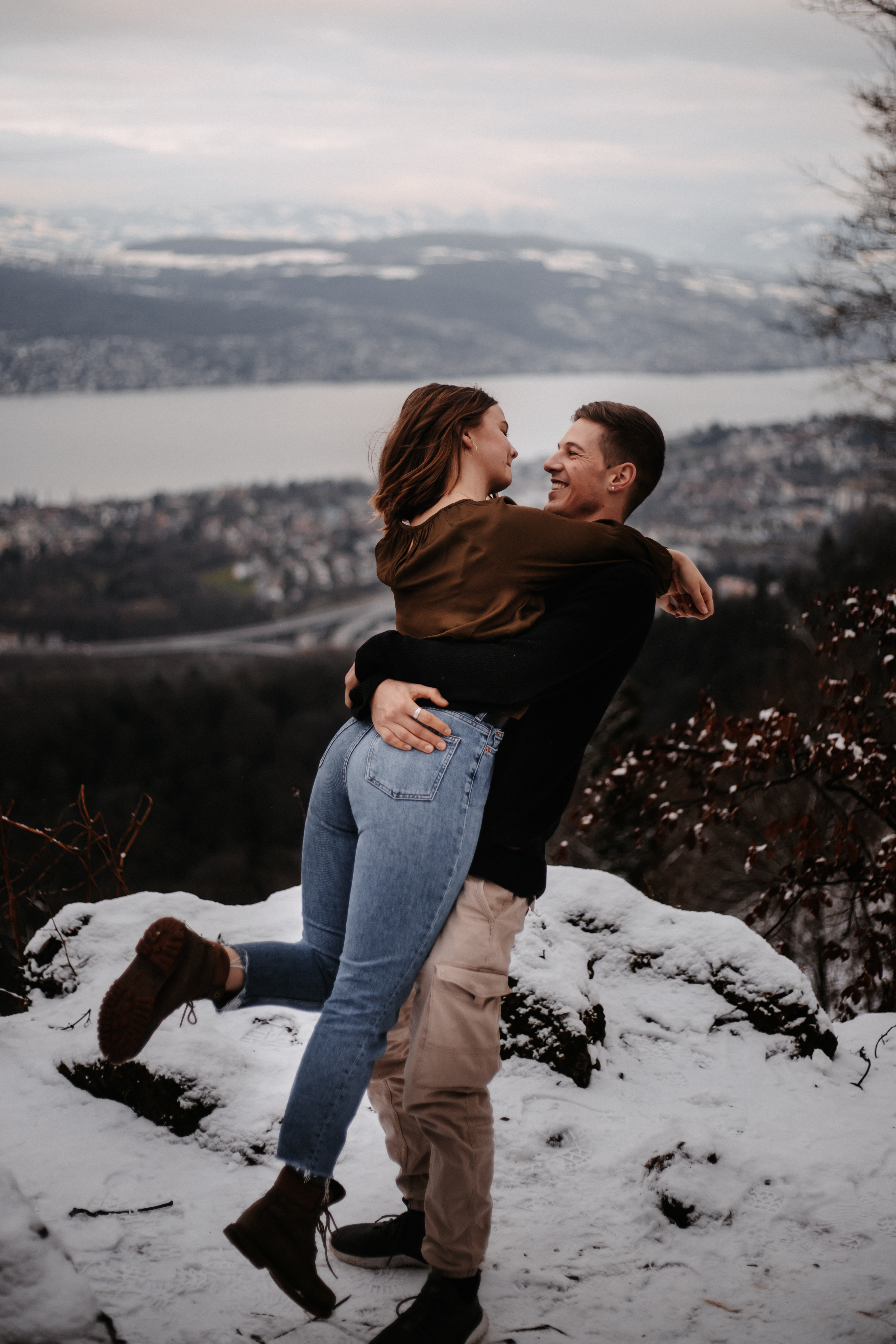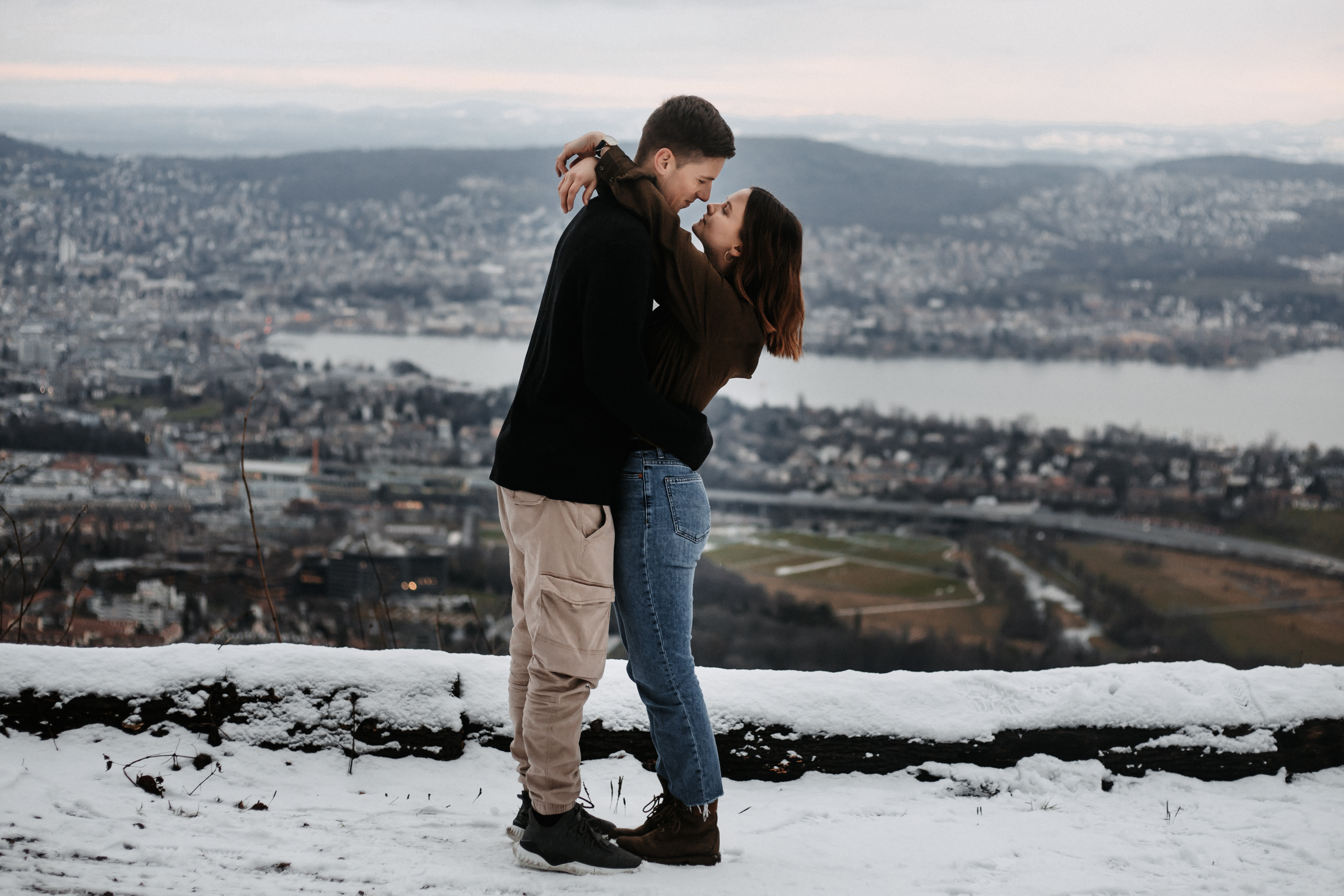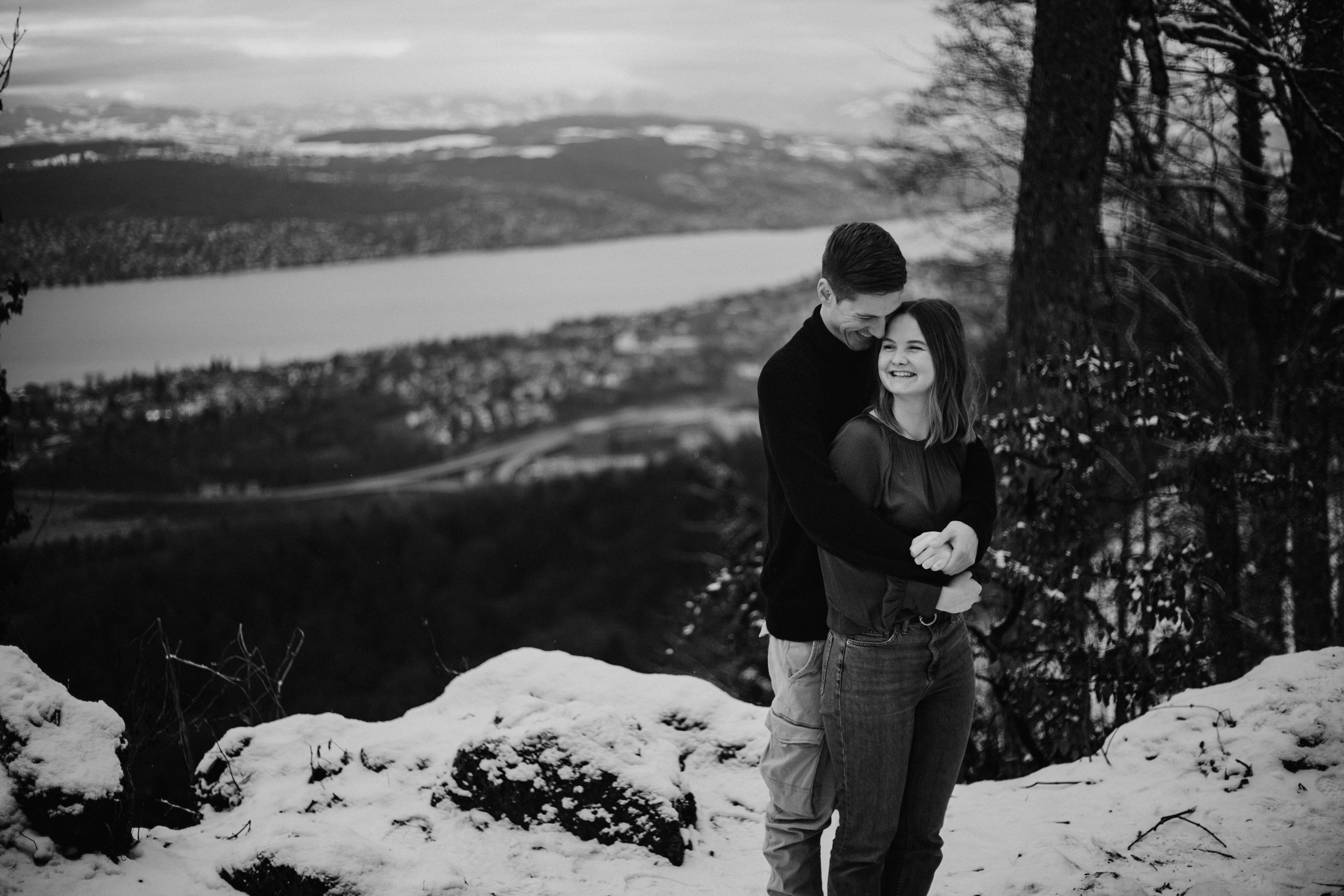 Uetliberg, Zürichsee. Für mich ist es immer wieder wunderschön, wenn ich Paare über mehrere Jahre nicht nur fotografisch, sondern auch freundschaftlich begleiten darf. Muriel & Janick sind seit meinen ersten richtigen Fotografie Versuchen dabei und für ihren 5. Jahrestag wollten wir das Shooting mit einem kleinen Ausflug verbinden. Trotz der vielen Leute bei der einzigen baumfreien Aussicht und einem abenteuerlich rutschigen Weg zu einem Schneefeld, war es ein schöner Tag und am Ende des Tages gab es eine Tasse Glühwein zum Aufwärmen. In meinen Augen zeigen die Fotos die Liebe und das Vertrauen zwischen diesen beiden wunderbaren Menschen.
