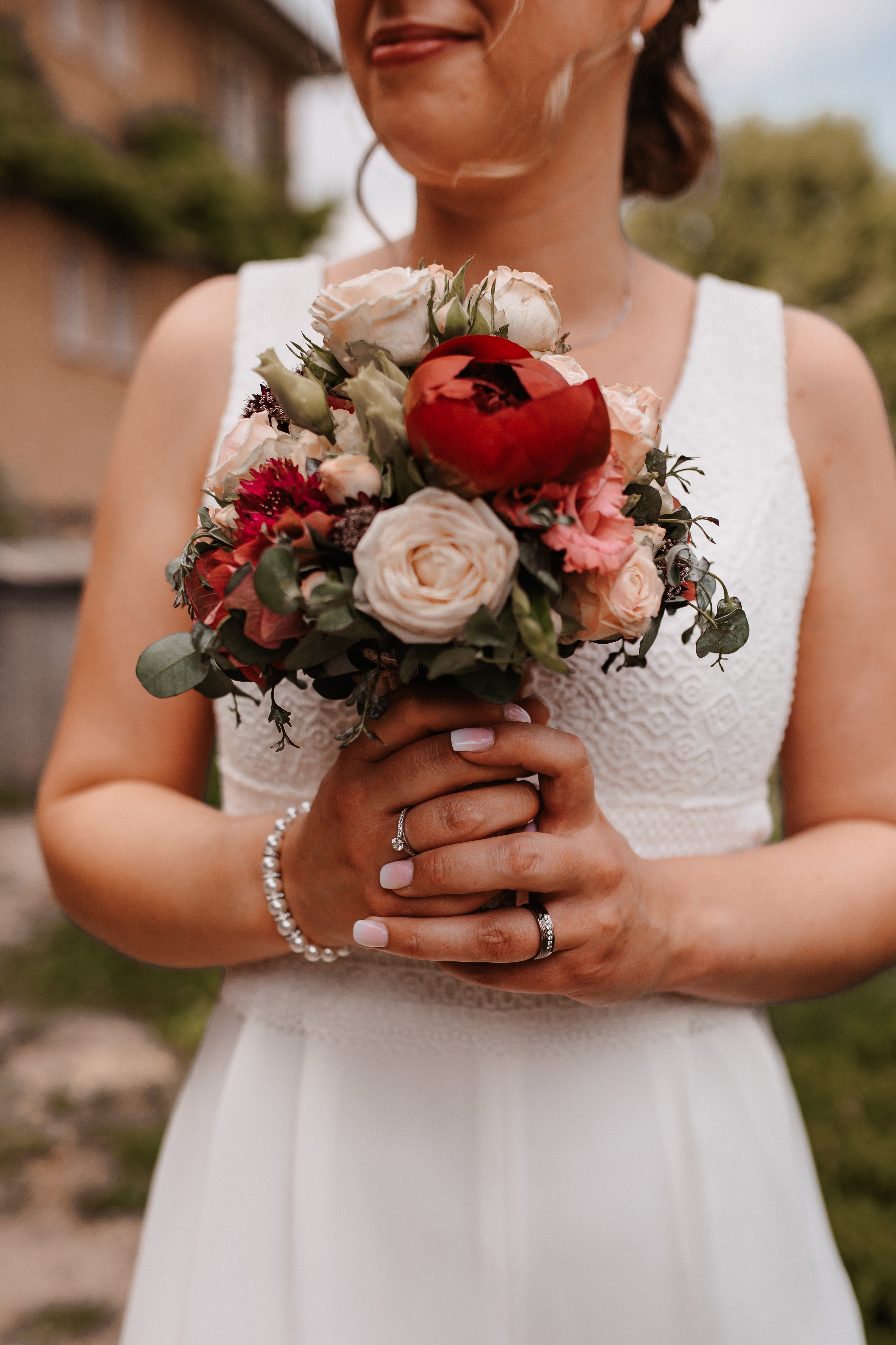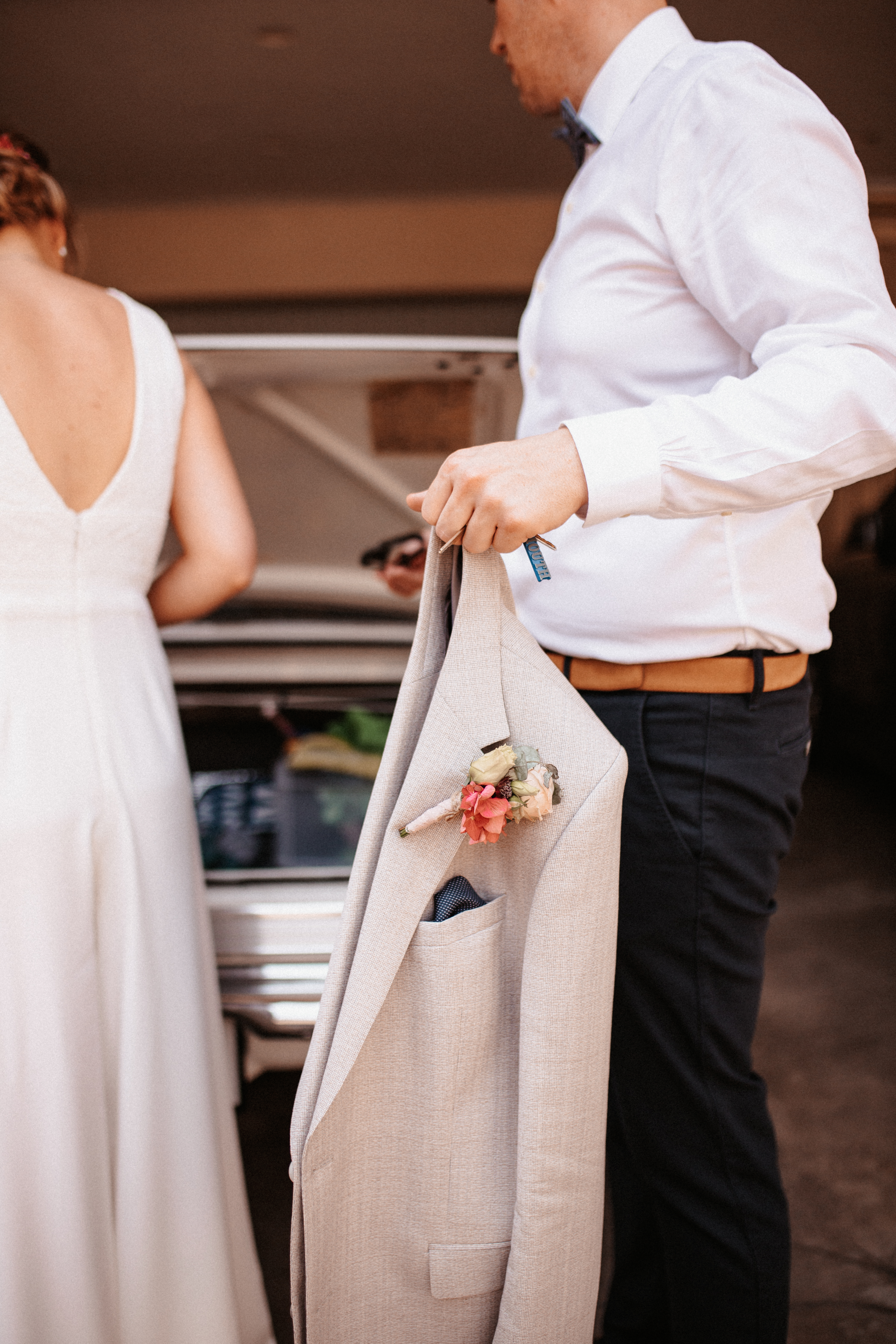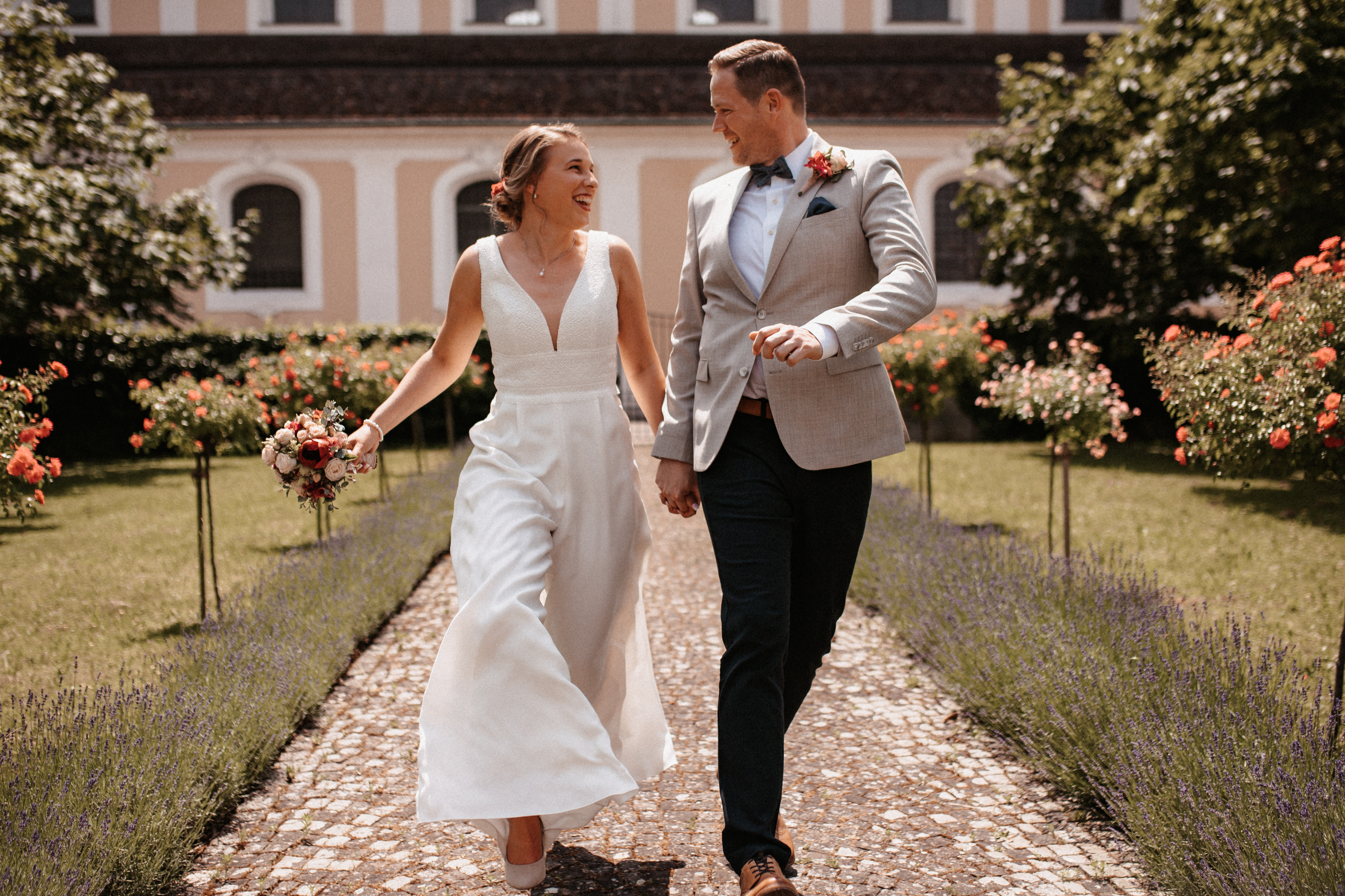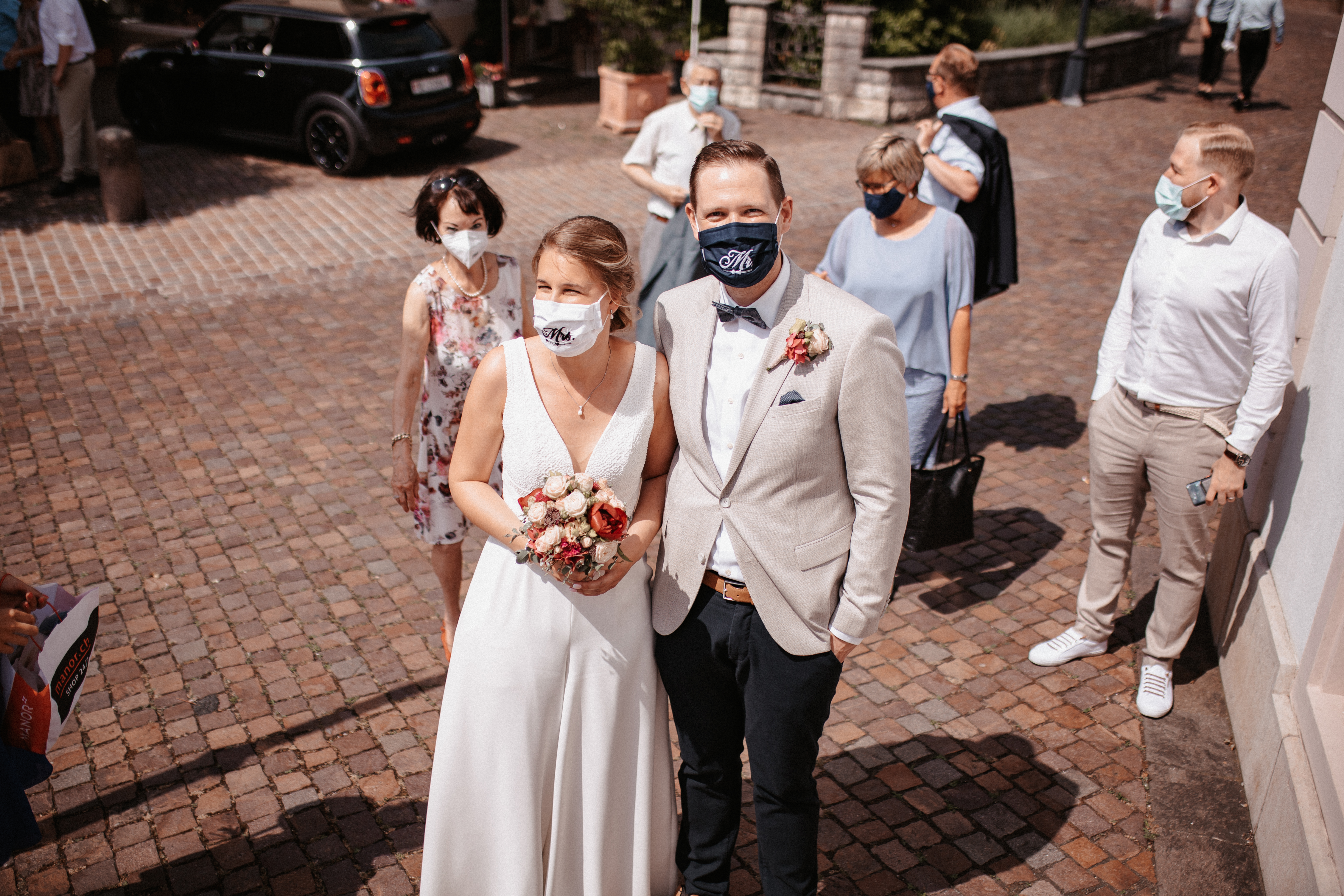 Nach dem Kennenlerngespräch mit Rebecca & Roman war ich super fröhlich – die Chemie zwischen Brautpaar und Fotografin passte absolut und ich hatte das Gefühl sie vertrauten mir in allen Punkten. Dies bestätigte sich dann auch an ihrer standesamtlichen Hochzeit. Wir hatten viel Spaß, die Stimmung war liebevoll und entspannt. Das Wetter spielte perfekt mit, auch wenn es vielleicht ein bisschen zu heiss war. Dennoch – wenn ich jetzt im Nachhinein mit dem vielen Regen darauf zurückblicke, bin ich auch mit heissen Temperaturen mehr als happy. Nach der zivilen Trauung gab es draußen eine kleine Überraschung und es wurde mit feinem ‚Guggelhopf‘, Sekt und Bier auf die Liebe der beiden angestoßen.